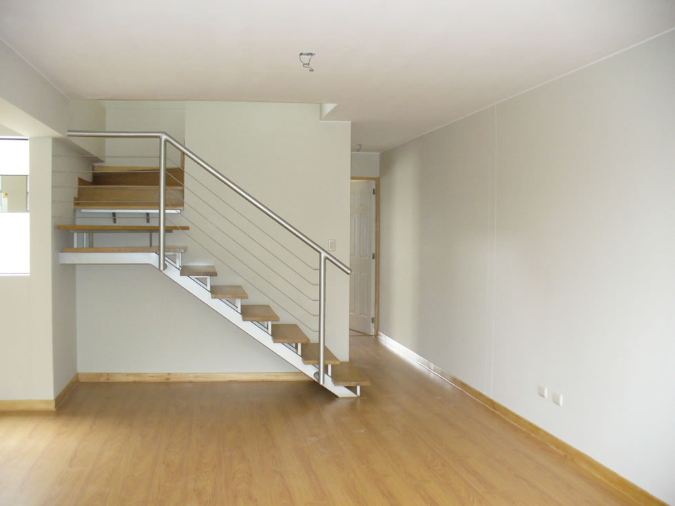 Departamento 401 del cuarto piso con 92.06 m2 de área techada (45.34 m2 en el primer nivel y 46.72 m2 en el segundo nivel) y 19.99 m2 de área libre, con dos niveles. El primer nivel consiste en sala-comedor con escalera, cocina, baño de visita y el segundo nivel consiste en hall, 2 dormitorios, baño secundario, terraza, patio-lavandería, baño de servicio.