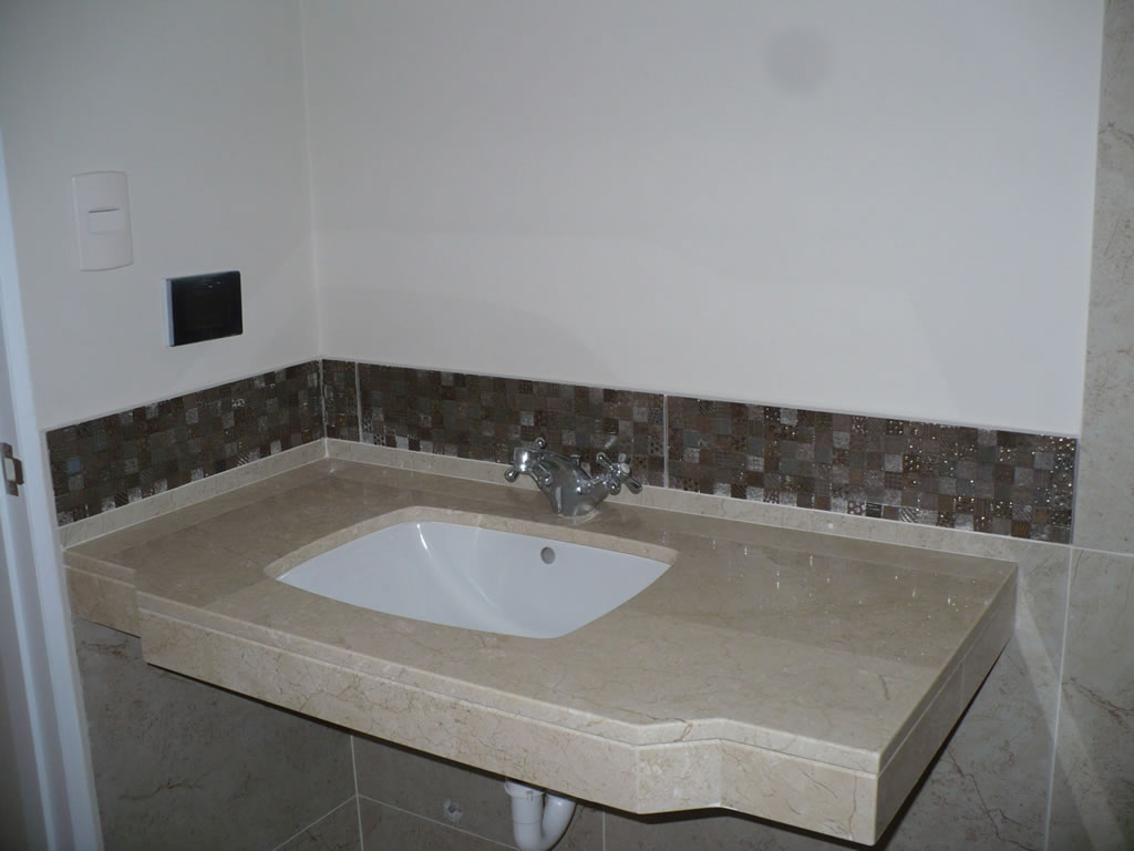 Inodoro One piece y mesada de mármol para los baños principales.