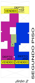 Departamento 202 del segundo piso con 149.97 m2 de área techada. Consiste en recibo, sala-comedor, baño de visita, cocina, patio-lavandería, cuarto y baño de servicio, 3 dormitorios, baño principal incorporado en el dormitorio principal, baño secundario, estar.