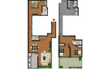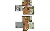 Departamento 102 del primer piso con 133.88 m2 de área techada (106.96 m2 en el primer nivel y 26.92 m2 en el segundo nivel) y 26.83 m2 de área libre, con dos niveles. El primer nivel consiste en sala-comedor con escalera, patio, 3 dormitorios, baño principal incluido en el dormitorio principal, baño secundario, cocina, patio-lavandería, cuarto de servicio, baño de servicio e ingreso y el segundo nivel consiste en estudio.