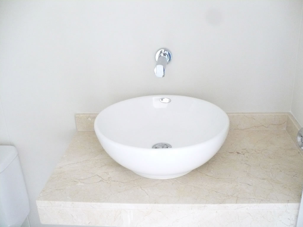 Inodoro One piece y mesada de mármol para los baños principales.